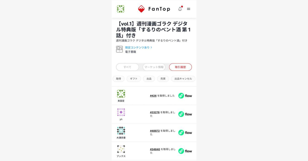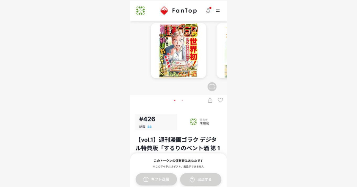 その上でFantopアプリを入手し、そのアプリと自分のIDを連携させることで、限定コンテンツである「NFT漫画雑誌」とデジタル特典版「するりのベント酒 第1話」を確認できます。