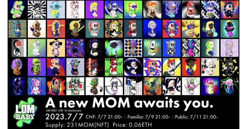 先月5分で即完を果たしたLOM BABYから、同ブランド1周年を記念してNFTコミュニティブランド「CNF」とコラボした特別なSALEを開催(※今回の販売をもって追加販売は終了となります。)