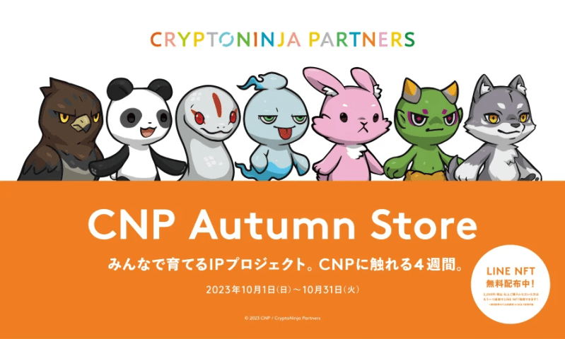 2022年5月、NFTの発売からスタートしたCNP。これまで、NFT保有者専用アプリの開発をはじめ、無料スマホゲーム「CNPバーニンウォーズ」のリリース、ふるさと納税の返礼品「ふるさとCNP」、漫画の制作、ラフォーレ原宿へのポップアップショップ出店、The Sandboxでの「CNP Land」公開など、NFTの枠を超えた事業開発を続けてきました。9月30日にはNFTによる数量限定LINEスタンプ「CNPトレジャースタンプ」第2弾の発売も予定しています。