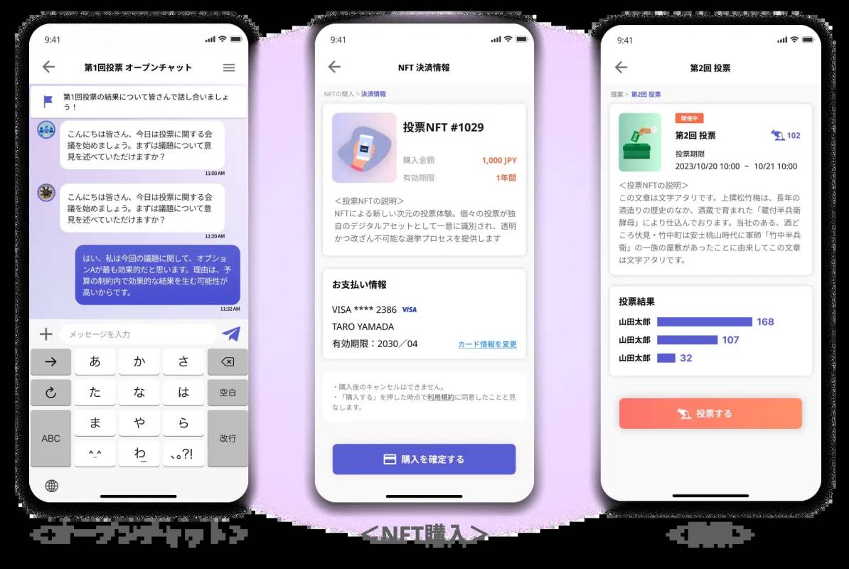 投票内容を秘匿したままブロックチェーン上に記録できる機能を実装し、遠慮せず意見を表明できる投票環境を提供しています。また、賛成/反対に加え棄権も可能なため、少数の賛成による過剰な可決を防止できます。