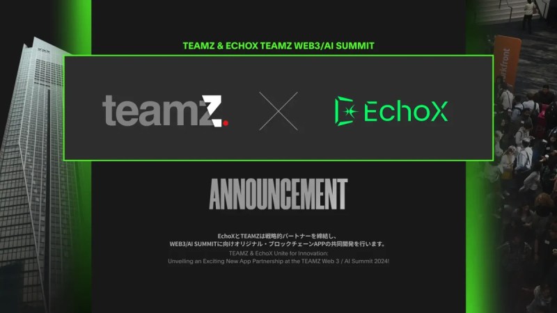 日本のトップWEB3カンファレンスのブランドの1つであるTEAMZは、台湾の大手Web3企業 EchoXとの戦略的パートナーシップを発表し、共に日本のビジネスネットワークに拡大と、Web3事業の拡大を推進していきます。今年4月13日・14日、虎ノ門ヒルズ(東京港区)にて開催予定のTEAMZ WEB3/AI SUMMIT 2024では、EchoXと共同開発を行っている、イベントオリジナルのアプリケーションがリリースされます。