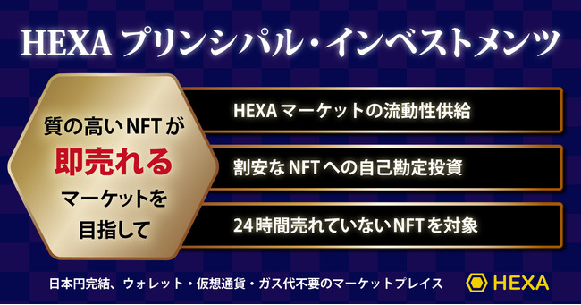 NFT発行・販売・転売マーケット「HEXA(ヘキサ)」は、自己資金で自社のマーケットで発売されているNFTを購入して投資する「HEXAプリンシパル・インベストメンツ」アカウントを作成しました。今後、発売後1日たっても売れていない質の高いNFTの購入を自己勘定で行います。