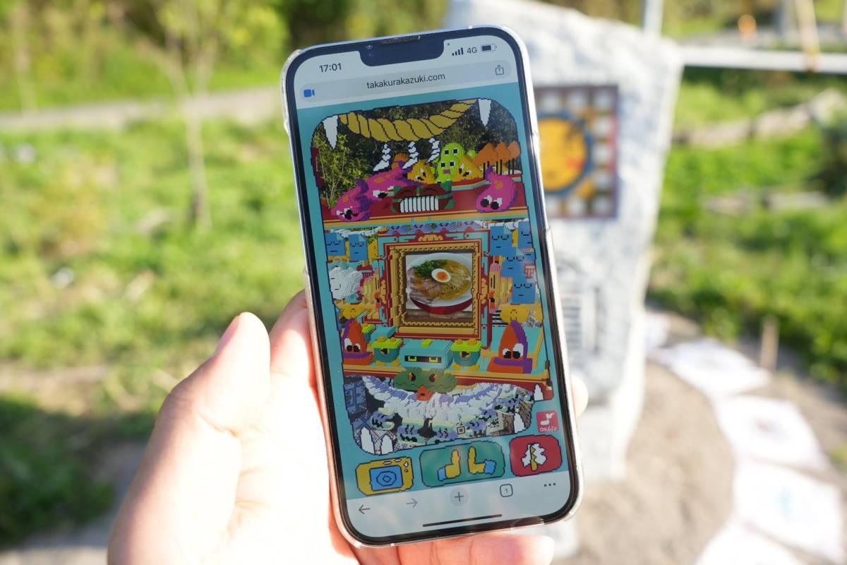 参拝者がスマートフォンをかざすとバーチャル社殿が立ち上がり、NFTや画像データを奉納できるインタラクティブ体験が可能です。
