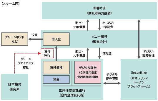 ソニー銀行株式会社(代表取締役社長:南 啓二/本社:東京都千代田区/以下 ソニー銀行)は、ソニー銀行のデジタル証券の第2号案件として「合同運用指定金銭信託受益権」(商品名:米ドル建てグリーンファイナンスセキュリティトークン(2024年第1号)、以下「本商品」)の募集の取り扱いを行いますのでお知らせいたします。