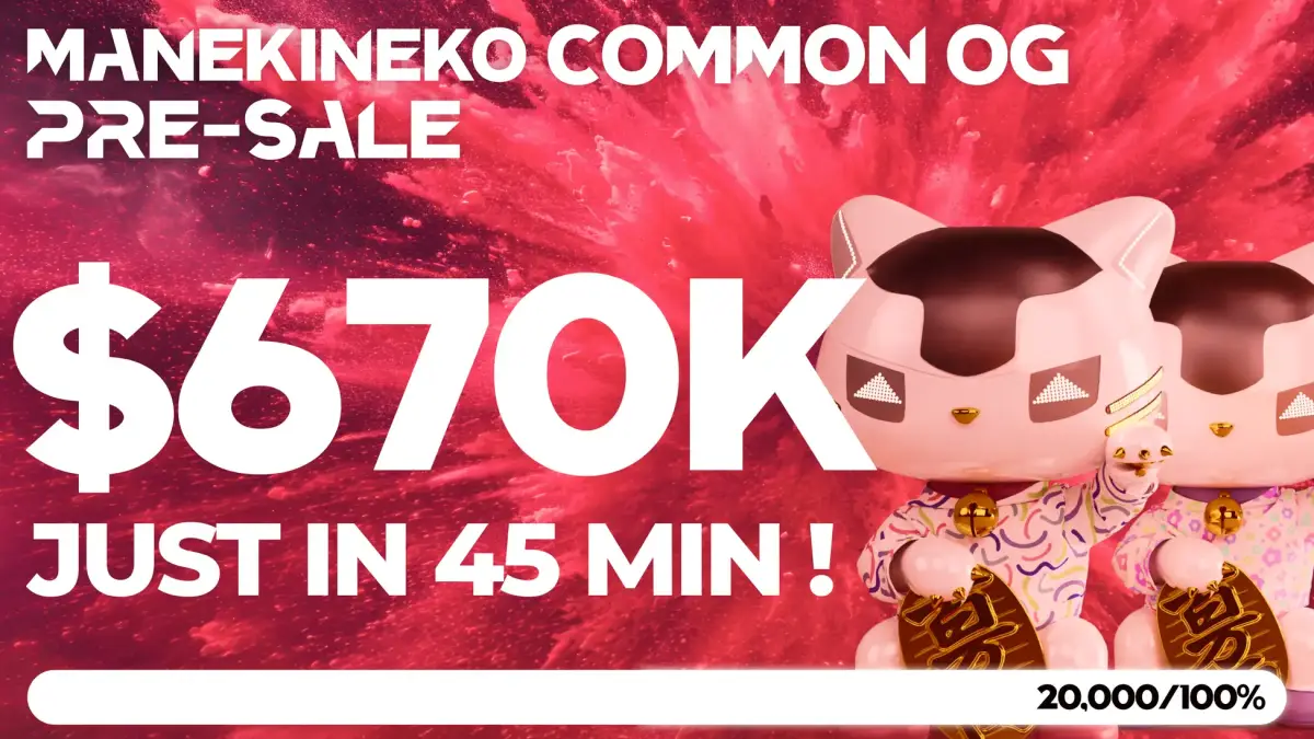 決済データをデジタル資産に変えるWeb3ライフスタイルアプリ「SyFu」は、2025年3月15日に開催したMANEKINEKO Common(OG)NFTプレセールにて、開始からわずか45分で販売数20,000個が完売、販売総額は約1億円(670K USD)に達したことを発表しました。