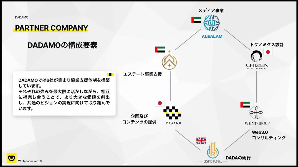 この中でDAAAMOは、企画・ブランディング・マーケティング支援およびコンテンツ戦略立案を専門とする支援パートナーとして参画しており、トークンの発行主体ではなく、外部よりDADAMOの成長を支援する立場にあります。