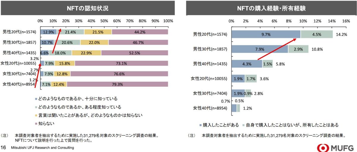約3.1万人の中で、NFTについて理解している人は3割以下であり、NFTを購入したことがある人は全体の1割以下であることがわかります。
