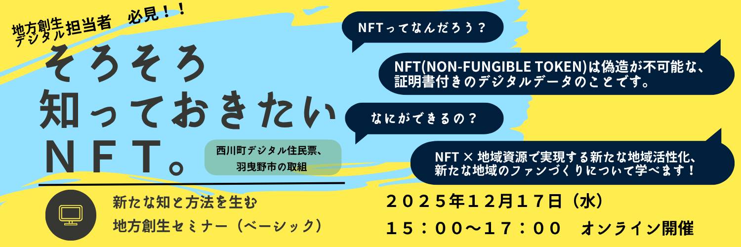 一般財団法人地域活性化センターは、NFTの基礎から地域での活用事例までを学べるオンラインセミナー「令和7年度〖ベーシック〗そろそろ知っておきたいNFT」を開催することを発表しました。