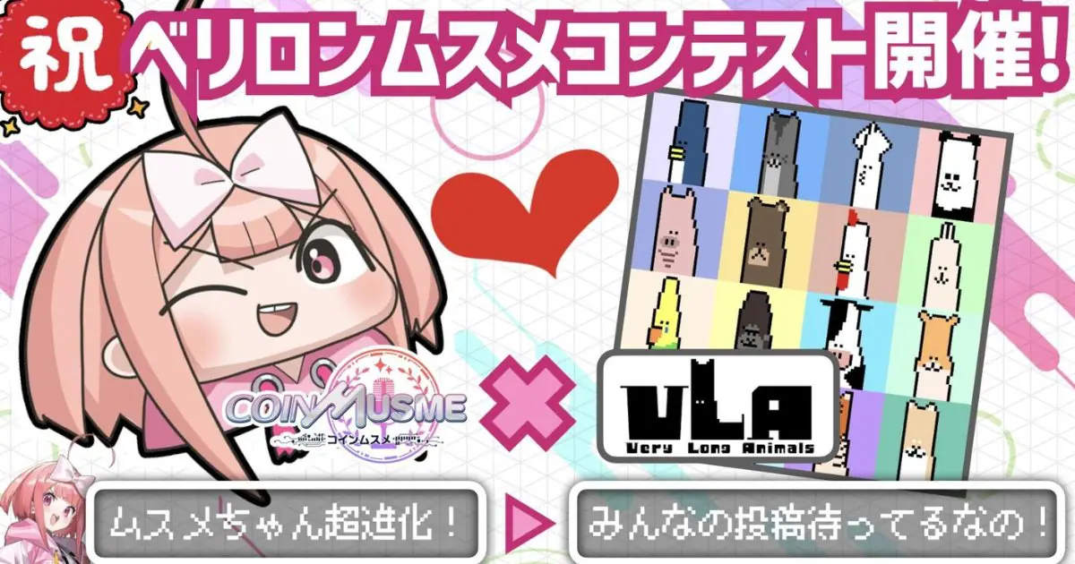 Eureka Entertainment Ltd.(CEO:Takuya Tsuji)が開発中のブロックチェーンゲーム「コインムスメ」は、NFTプロジェクトの「VeryLongAnimals」(ベリーロングアニマルズ、以下ベリロン)と提携し、コインムスメの広報キャラクターであるムスメちゃんのべリロンイラストコンテストを開催いたします。