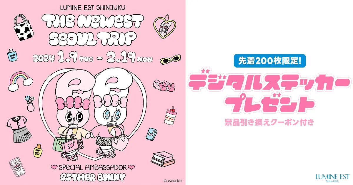 ルミネエスト新宿が開催する「The Newest Seoul Trip」の景品引き換えクーポン付きのデジタルステッカー(NFTクーポン)を先着200名さまにプレゼント!