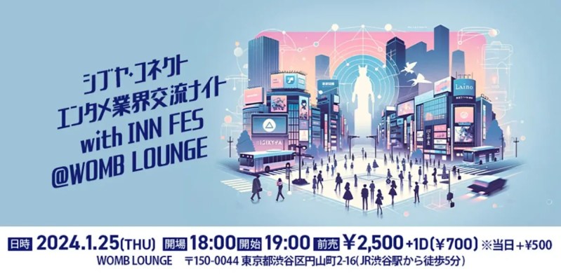 2024年1月25日、東京 - IDOL NFT NETWORKが主催する「INN FES mini vol.1」と、woof株式会社が企画する「シブヤ・コネクト エンタメ業界交流ナイト」が、渋谷WOMBで同時開催されます。