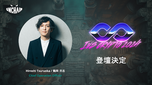 世の中を“神ゲー”にして動かす、株式会社UNCHAIN(本社:東京都渋谷区、代表取締役:ウィン・レイ)のCOO 鶴岡洋志が、2024年7月4日(木) 〜 6日(土)の3日間に渡り京都パルスプラザにて開催される「IVS Crypto 2024 KYOTO」にて、Web3 Entertainment Zone「SHAKE!」内ステージで行われるトークセッションに登壇いたします。