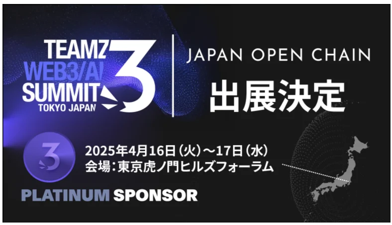 ブロックチェーンインフラなどのweb3ソリューションを提供するG.U. Technologies Global PTE. LTD.は、4月16日から4月17日の2日間、東京虎ノ門ヒルズフォーラムで開催される日本最大級のWeb3・AIカンファレンス「TEAMZ Summit 2025」 に、プラチナスポンサーとしてブース出展することを発表しました。