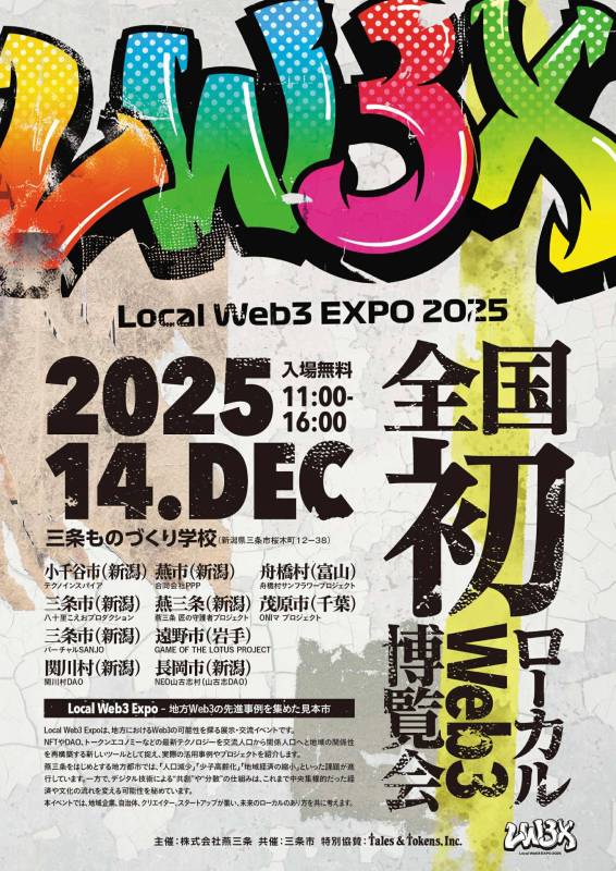 株式会社燕三条は、地方におけるWeb3の可能性にフォーカスした展示・交流イベント「Local Web3 EXPO 2025」を、2025年12月14日(日)に開催することを発表しました。