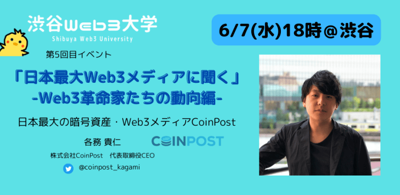 第5回目「日本最大Web3メディアに聞く!」-Web3革命家たちの動向編-を6月7日渋谷で開催します!