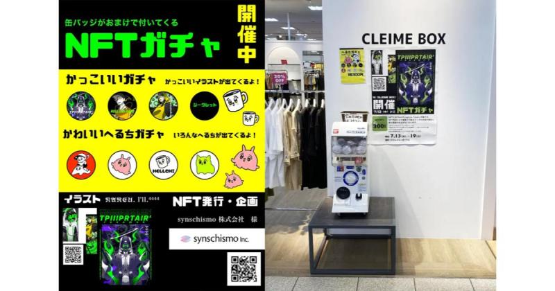 synschismo株式会社(読み:シンシズモカブシキガイシャ 本社:東京都港区 代表取締役社長:赤川英之)が、福田屋百貨店(読み:フクダヤヒャッカテン 代表取締役社長:福田宏一)と提携し、FKDショッピングモール宇都宮インターパーク店(場所:宇都宮市インターパーク6丁目1番地1)にて『NFT×ガチャガチャ』によるリアルコンテンツの実証実験を行う。