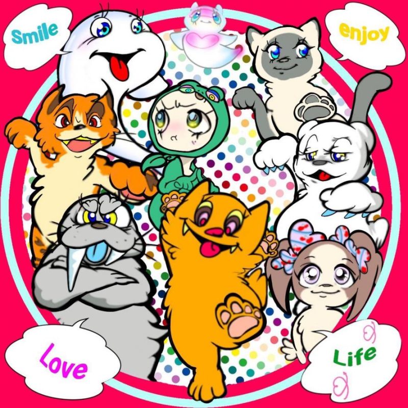 smiles invite joy 笑顔は喜びを誘うコンセプトに 可愛らしいアニマルズ8匹(擬人化あり)と1人のオリジナルキャラクターが多くの笑顔をつなげる活動を頑張っています。 あつまった収益金の一部は保護猫、小児がんの支援金として使用させて頂きます。 動物からもらう癒しパワーでかわいらしいアニマルズを楽しんでいただけると嬉しいです。
