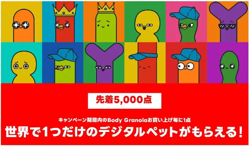カルビー株式会社(本社:東京都千代田区、代表取締役社長兼CEO:江原 信、以下カルビー)は、『Body Granola(ボディグラノーラ)』の定期購入をお買い上げ毎に、腸内細菌をキャラクター化したNFTを先着で5000点プレゼントするキャンペーンを2024年3月12日(火)から期間限定で実施します。