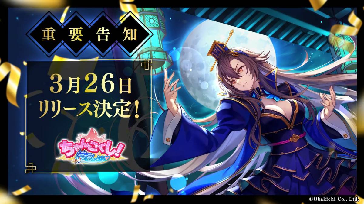 『ちゃんごくし!結魂(けっこん)しよう』の正式リリースが3月26日(火)に決定いたしました。App Store、Google Playの両ストアにおいて同日より正式に配信を開始する予定です。