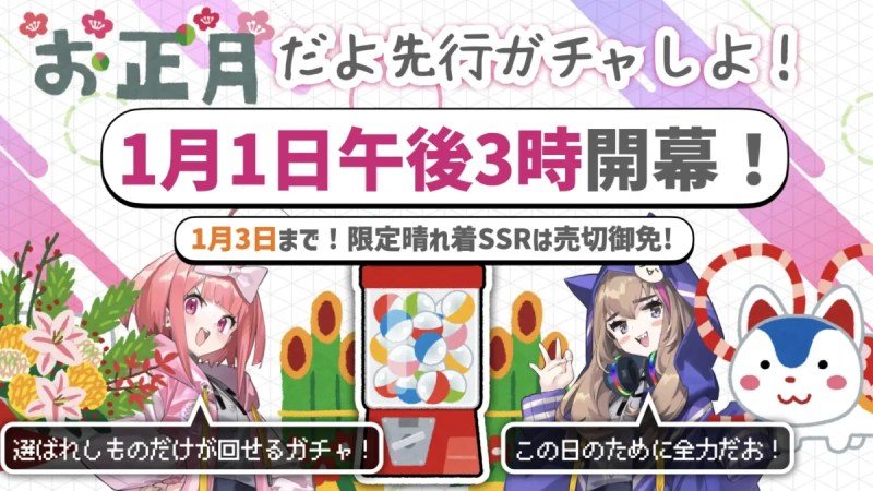 - 先行ガチャが1月1日(月)午後3時にスタート