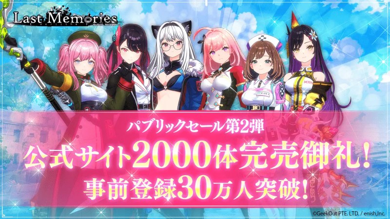 株式会社enish(本社:東京都港区、代表取締役社長:安徳孝平、以下enish)は、「GEEKOUT PTE. LTD.(本社:シンガポール、代表取締役CEO嶋瀬 宏)」と連携し、開発中のモバイルゲームクオリティのブロックチェーンゲーム『De:Lithe Last Memories(ディライズ ラストメモリーズ)』について、5月9日より本タイトルの「公式特設販売サイト」で実施していたパブリックセールにおいて、NFTドール2000体が完売したことをお知らせします。