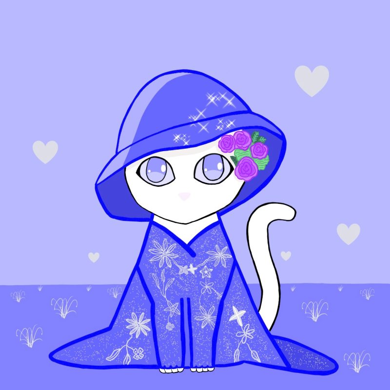 キラキラドレスで着飾った上品な猫ちゃんです。チャームポイントは、綺麗な瞳です。