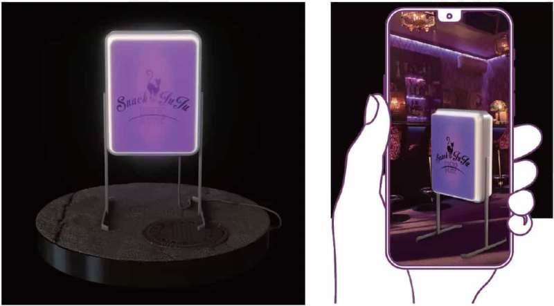 本公演において配布するデジタルコンテンツは「スナックJUJU東京ドーム店」のシンボルである“スナックJUJUの看板”を3D化したものです。AR機能を活用して、好きなところに看板を表示・撮影して楽しむことが可能です。また、撮影した画像はSNSなどへの投稿することも可能で、ファン同士のコミュニケーションを促進し、ライブ来場者への新たなエンターテインメント体験を提供します。