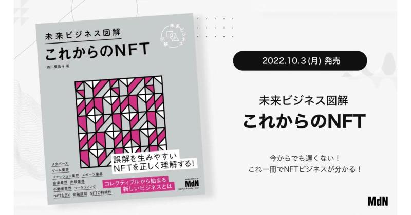 Web3領域において最も注目を集めるNFTについて、より多くの方にその仕組みやエコシステム、ビジネスモデルを体系的かつ視覚的に理解を深めていただくための解説書として、「未来ビジネス図解 これからのNFT」を執筆し、2022年10月3日からMdNコーポレーションより発売したことをお知らせします。