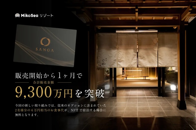 MikoSea株式会社(所在地:東京都千代田区、代表取締役:工藤亮太、以下MikoSea)は、革新的なデジタル会員権プラットフォーム「MikoSeaリゾート」において、熱海山龢年間1泊宿泊付きSANGA NFT会員権の販売が2023年9月1日に開始され、わずか1か月で9,300万円分のNFT会員権を販売しました。