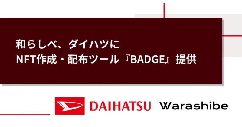 この記事では、株式会社和らしべが、誰でも簡単にわずか1分でNFTを作成・配布することができるノーコードツール「BADGE」を、ダイハツ工業株式会社へ提供することをお知らせします。
