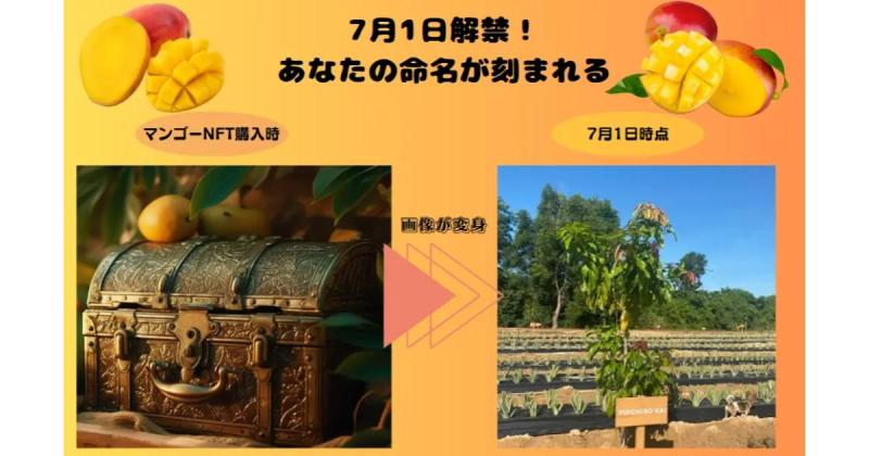 ・マンゴー命名NFT:あなたが名付けた極上のポトリ果マンゴーの画像が、ブロックチェーン上で記録されるNFTとなります。