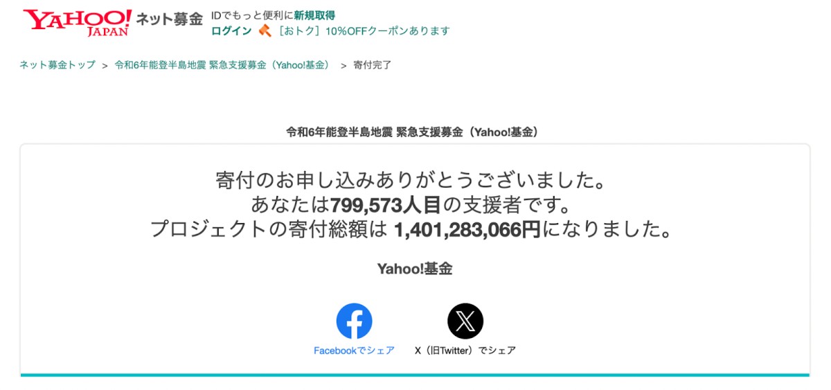 4.【Yahoo!基金】令和6年能登半島地震 緊急支援募金