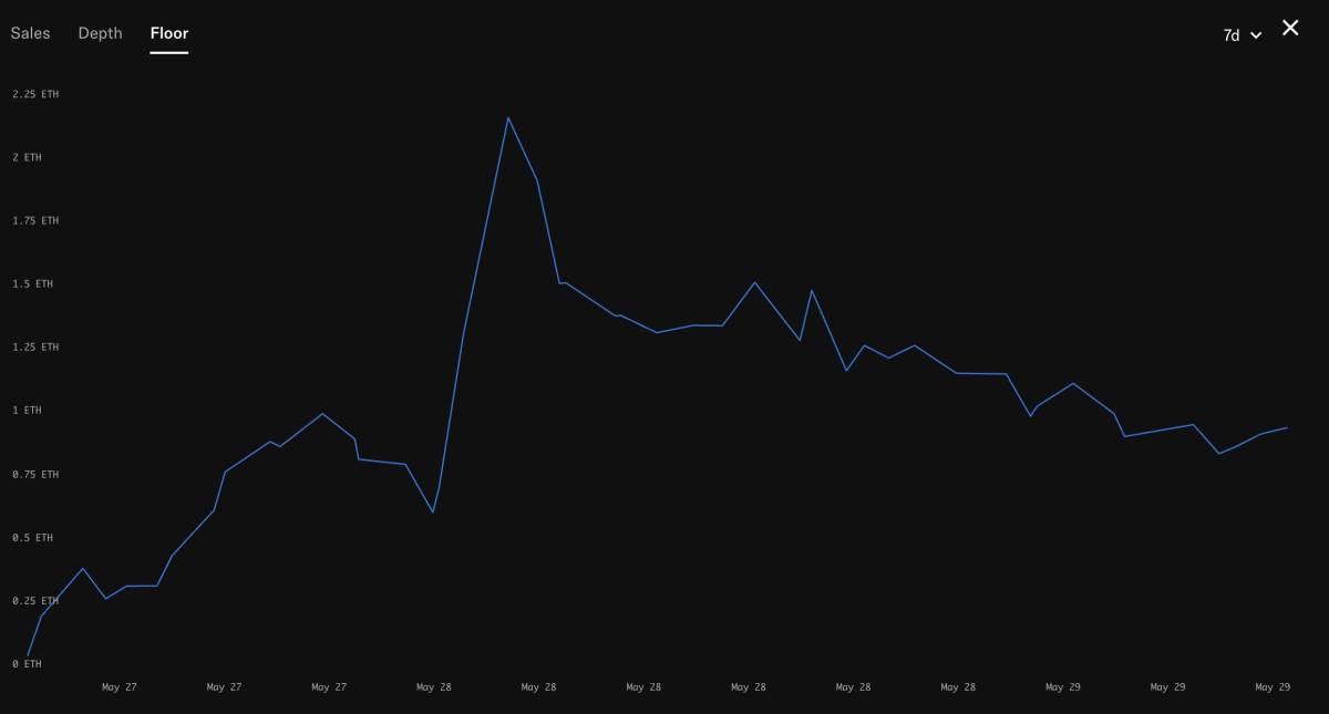その後の二次流通では28日にフロア価格が一時2ETHを超え、72時間で取引高は148ETHに達しています。