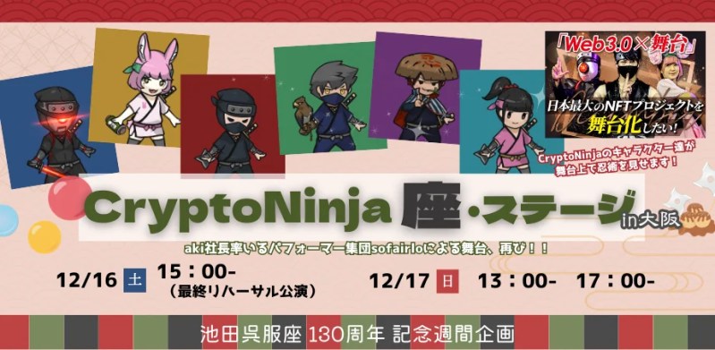 大阪府池田市の池田呉服座は、創業130周年を記念し、特別な週間を開催いたします。その名も「池田呉服座 130周年 記念週間」。130年前からの芝居小屋で、Web3ベースのキャラクタが実際に動くデジタルなショーや、外国人や女性の演者によるダイバーシティ(多様性)な伝統芸能が復活します。