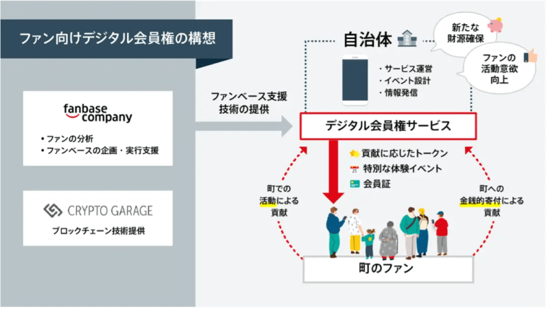 この記事では、株式会社デジタルガレージ(東証プライム 4819、本社:東京都渋谷区、代表取締役 兼 社長執行役員グループCEO:林 郁、以下:DG)の子会社で、フィンテック分野におけるブロックチェーン金融サービス事業を展開する株式会社Crypto Garage(https://cryptogarage.co.jp/)(本社:東京都渋谷区、代表取締役:大熊 将人、以下:Crypto Garage)より株式会社ファンベースカンパニー(https://www.fanbasecompany.com/index.html)(本社:東京都渋谷区、代表取締役社長:津田 匡保、以下:ファンベースカンパニー)が2023年10月に岩手県紫波町と実施した、紫波町ファンコミュニティとの共創と、新たな財源確保を目的とした「ファン向けデジタル会員権」の実証及び体験会を、技術的な側面からの支援を発表されました。以下、プレスリリース詳細を掲載しております。