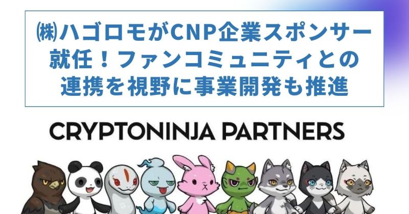 カレンダー等の出版、販売を行う株式会社ハゴロモ(所在地:東京都千代田区、代表取締役:橘壮太郎)は、株式会社バケット(本社:東京都新宿区、代表取締役社長:秋山慎治)が運営するNFTプロジェクト「CNP(CryptoNinja Partners)」の企業スポンサーに2024年4月4日に就任しました。