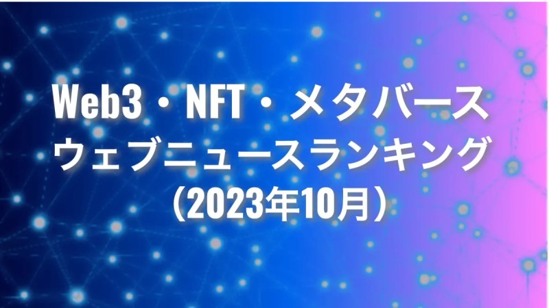 株式会社トドオナダ(代表取締役社長 松本泰行)は、2023年10月1日〜10月31日までのWeb3・NFT・メタバースに関するウェブニュースについて調査・分析いたしました。