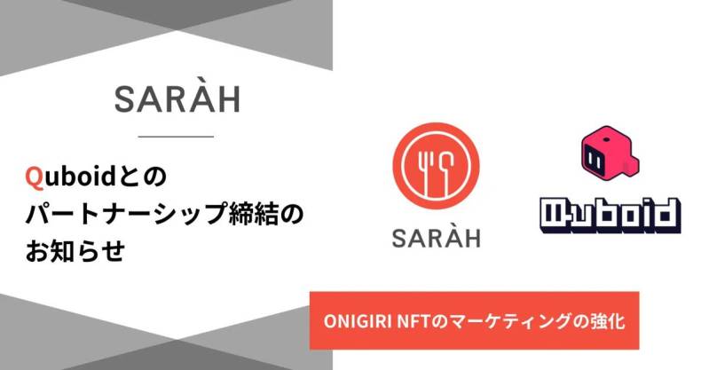 この記事では、食とヘルスケアに特化したパブリックブロックチェーン「ONIGIRI Chain」、おいしい!が増えるグルメアプリ「SARAH」などを運営する、株式会社SARAH(東京都千代田区、代表取締役 CEO 酒井勇也)よりインド工科大学およびビルラ工科大学院の出身者によって設立されたWeb3スタートアップのQuboid社(旧 Metasky)とパートナーシップを締結が発表されました。以下、プレスリリース詳細を掲載しております。