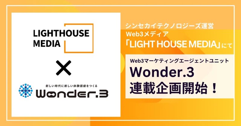 株式会社SHINSEKAI Technologies(本社:東京都渋谷区、代表取締役社長:大社武、以下:当社)が運営するビジネスパーソン向けWeb3メディア「LIGHT HOUSE MEDIA」にて、株式会社新東通信(本社:東京都中央区、愛知県名古屋市 代表取締役会長兼社長 谷 喜久郎 以下、新東通信)が推進するWeb3特化型エージェントコンソーシアム「Wonder.3(ワンダー・スリー)」による連載企画が開始されました。