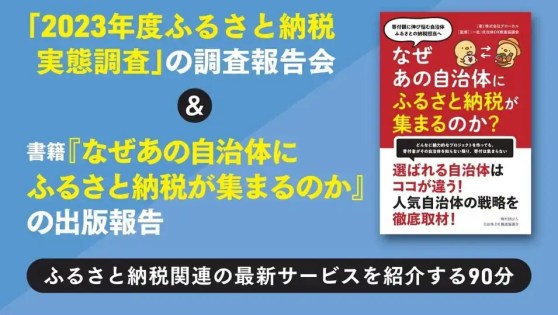 イベント プレスリリース <2023年度ふるさと納税実態調査報告会>オンラインセミナー タイムテーブルを公開。ふるさと納税 × 楽天市場・amazon / リピート施策(LINE活用)/ 現地消費・決済型 /NFT の最新情報 2024年6月21日