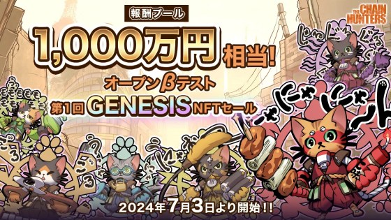 ゲーム プレスリリース 「Play & Earn」を掲げる新作Web3ゲーム『THE CHAIN HUNTERS』第1回GENESISセールおよびオープンβテストを本日15時より開始! 2024年7月3日