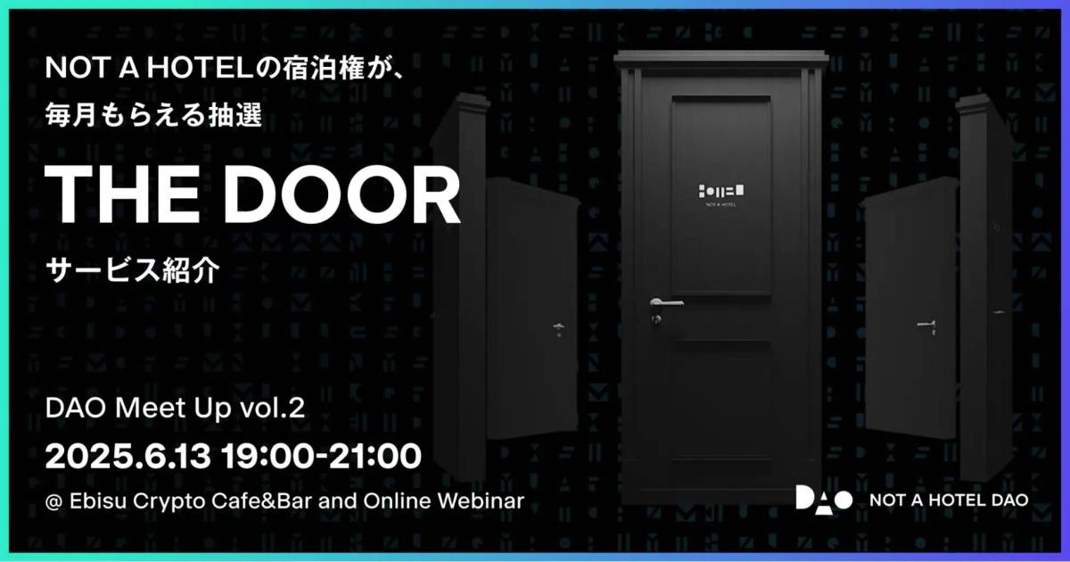 NOT A HOTEL DAO株式会社は、暗号資産「NOT A HOTEL COIN(NAC)」を持つだけで宿泊権が得られるサービス「THE DOOR」を6月15日にリリースすることを発表しました。