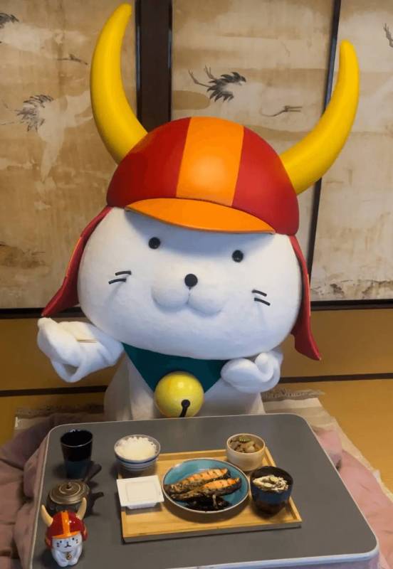 滋賀県彦根市の公式キャラクター。彦根藩井伊家二代当主である井伊直孝公をお寺の門前で手招きして雷雨から救ったと伝えられる"招き猫”と、井伊軍団のシンボルとも言える赤備え(戦国時代の軍団編成の一種で、あらゆる武具を朱塗りにした部隊編成のこと)の兜(かぶと)を合体させて生まれたキャラクター。