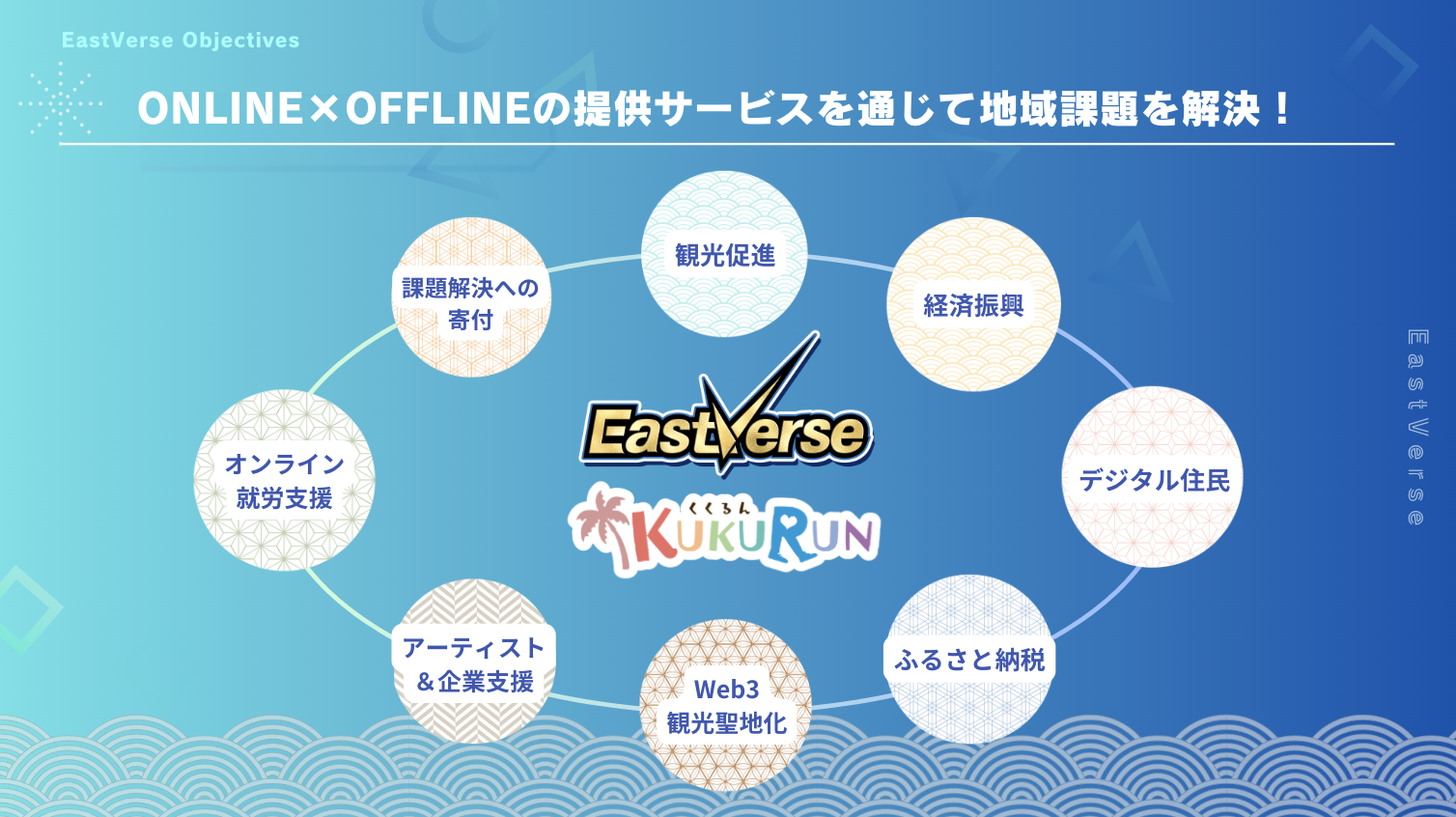 今後もEastVerse PASS NFTやWeb3プラットフォームアプリ『kukurun』などEastVerseプロジェクトのサービスリリースに合わせてNFT加盟店は増加し、来年以降は沖縄県内の1000店舗を超えるNFT加盟店数を目標としての利⽤を計画しております。
