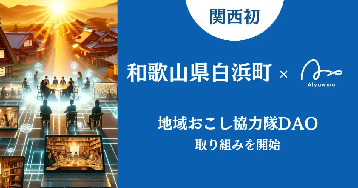 株式会社あるやうむは「地域おこし協力隊」と「デジタルコミュニティ(DAO)」を掛け合わせて地域を活性化するサービス『地域おこし協力隊DAO』関西初の取り組みを、和歌山県白浜町で開始します。地域おこし協力隊員がつくるDAOによる「関係人口創出」と「イノベーティブな地域課題の解決」が目的です。自治体のDAO設立への取り組みを推進し、地域活性化とDXを加速させます。本取り組みは2024年8月1日から開始しております。※本取り組みはデジ田交付金での対応も可