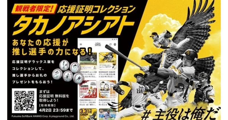 公式サービスサイト:https://takano-ashiato-ouen-shomei-collection.softbankhawks.co.jp/pages/タカノアシアト-開幕戦3-31