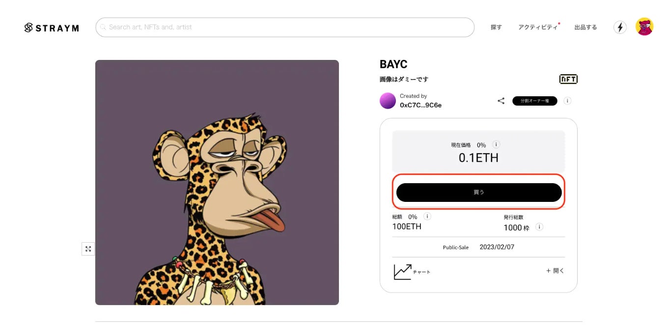 ①厳選・限定・オリジナルの特別なオーナー権を日本円またはETHで購入できる