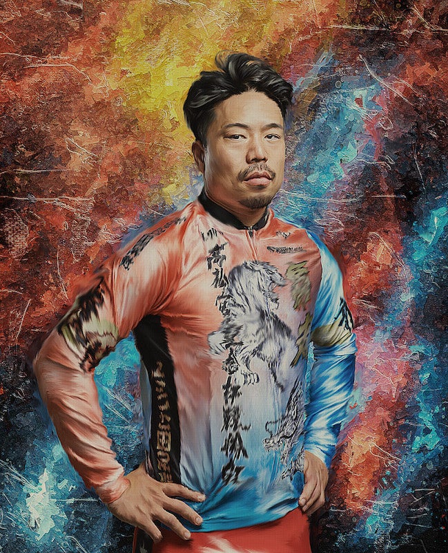 今回も、現代アーティストであるヒロ杉山氏を中心として活躍するEnlightenment(エンライトメント)がポートレート作品で得意とする画法で描いた肖像画。スポーティでありダイナミックな印象を与え、古性選手の個性的な印象をさらに表現するものとなっている。