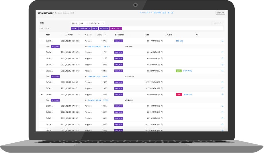 株式会社ChainForceは、ブロックチェーン上のデータを収集・解析しNFTの売上などを自動集計するサービス『ChainChaser』を公開しました。