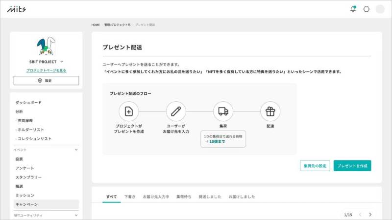 NFTを中心としたWeb3事業を営むSBINFT株式会社(本社:東京都港区、代表取締役社長:高 長徳、以下「当社」)は、ベータ版提供中の「SBINFT Mits」において、ヤマト運輸株式会社(以下、ヤマト運輸)の配送連携APIサービスを導入し、「SBINFT Mits」からプロジェクトがウォレットアドレス等を把握しているユーザー宛に実物商品を容易に発送できる機能を、2024年5月を目処に提供開始する予定です。